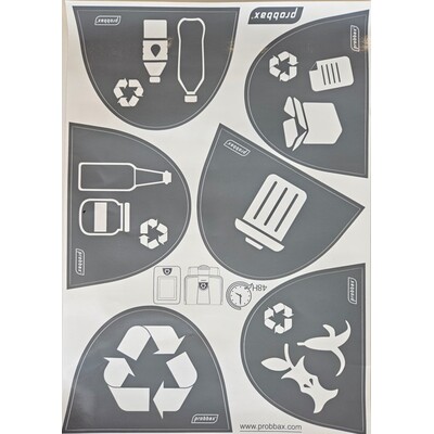 Inclus : six autocollants "déchets" pour faciliter l'identification des déchets attribués à la poubelle.